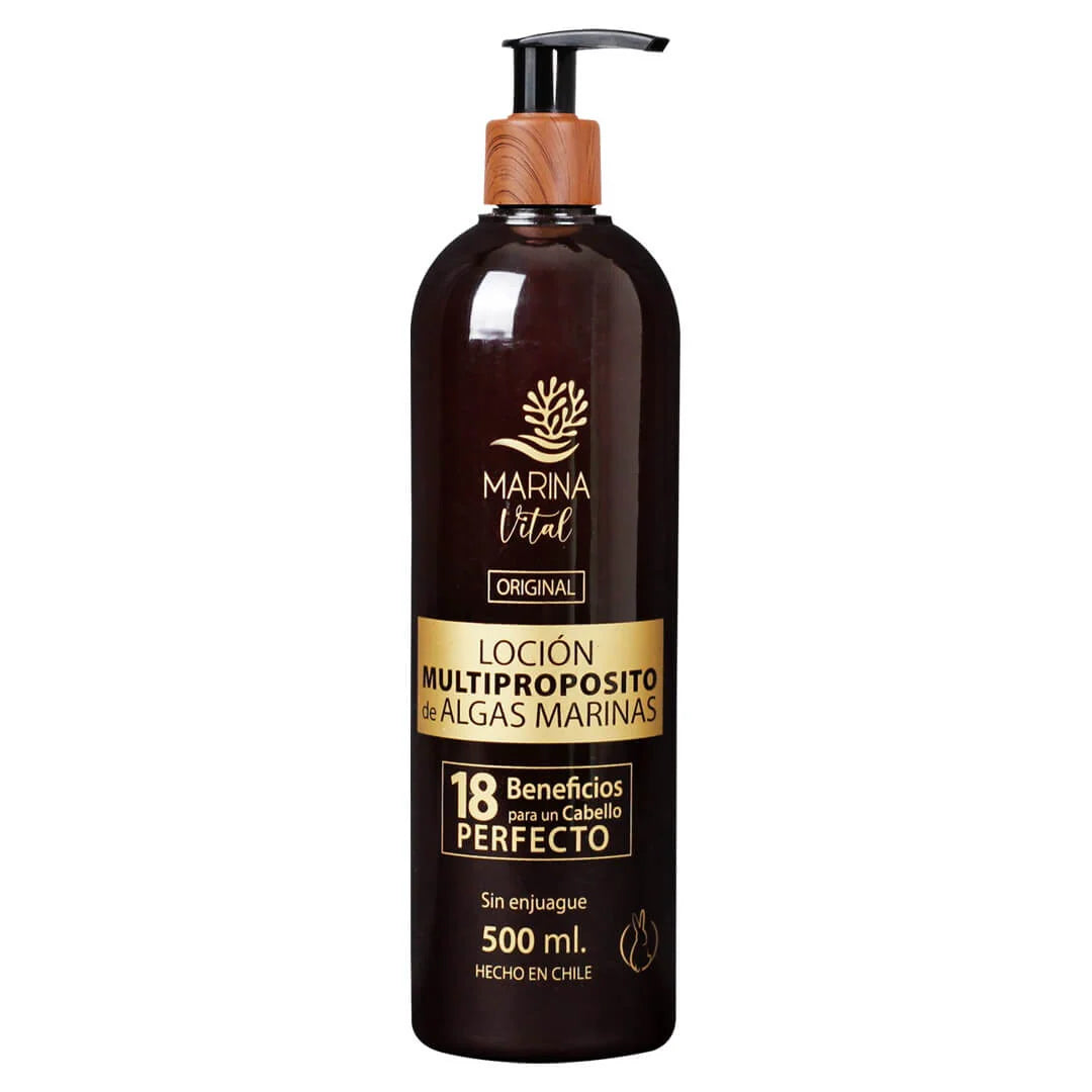 Tratamiento capilar integral a base de Algas Marinas que nutre, hidrata, repara, acondiciona y suaviza la fibra capilar. La fórmula de la Loción Original Multipropósito de Algas Marinas le entregará los siguientes beneficios a tu cabello: